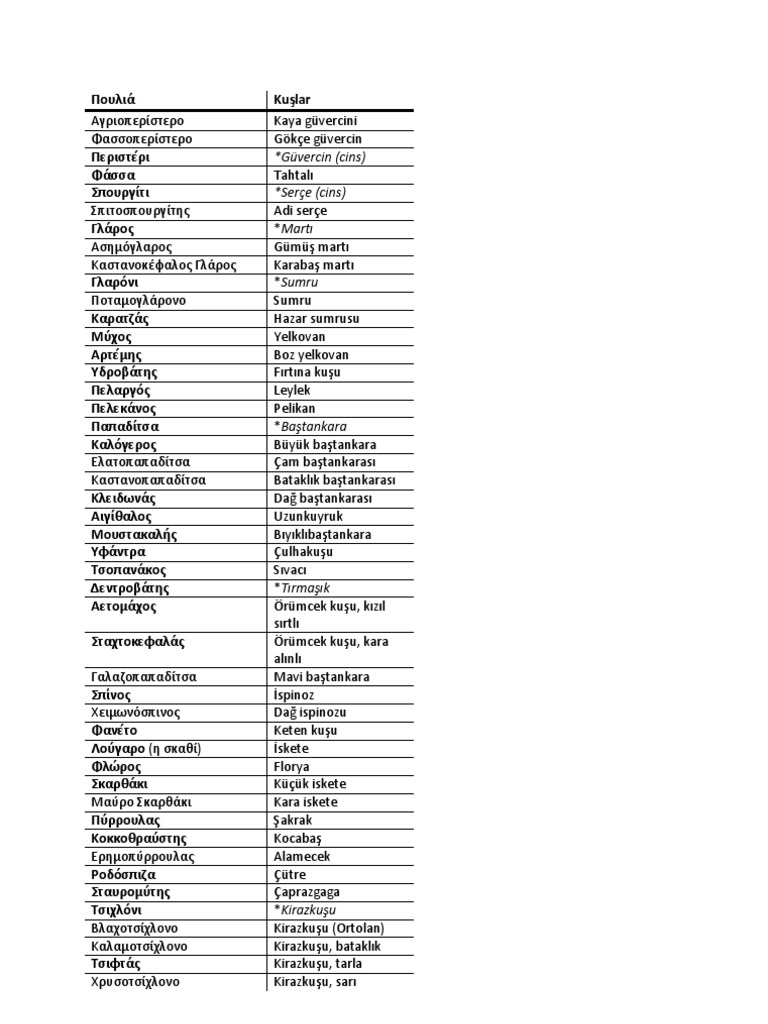 ingilizce kuş isimleri.